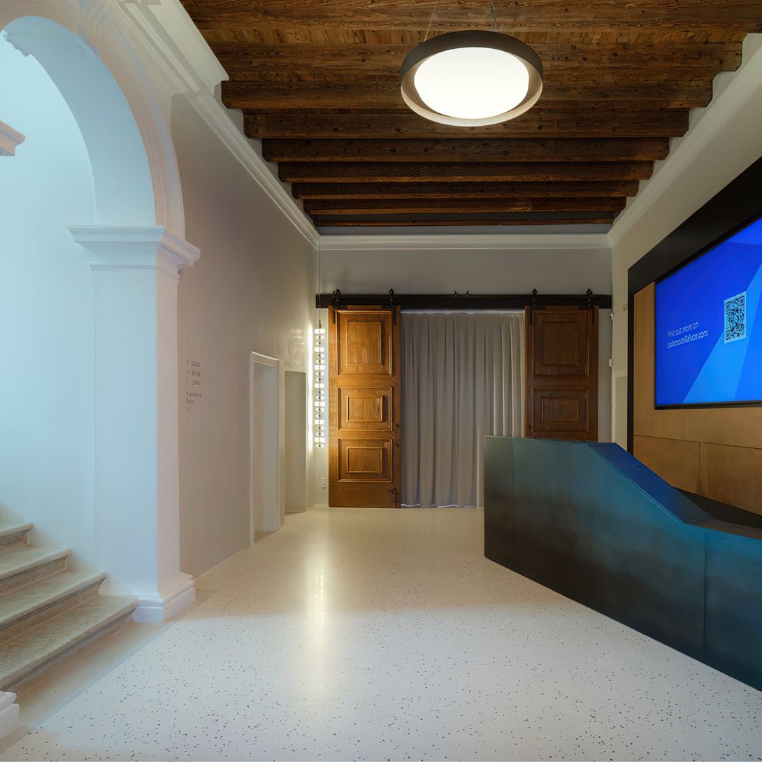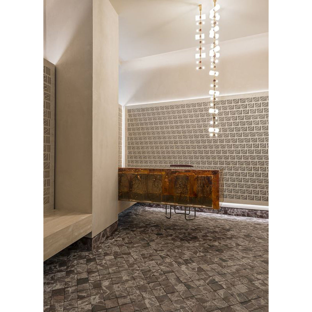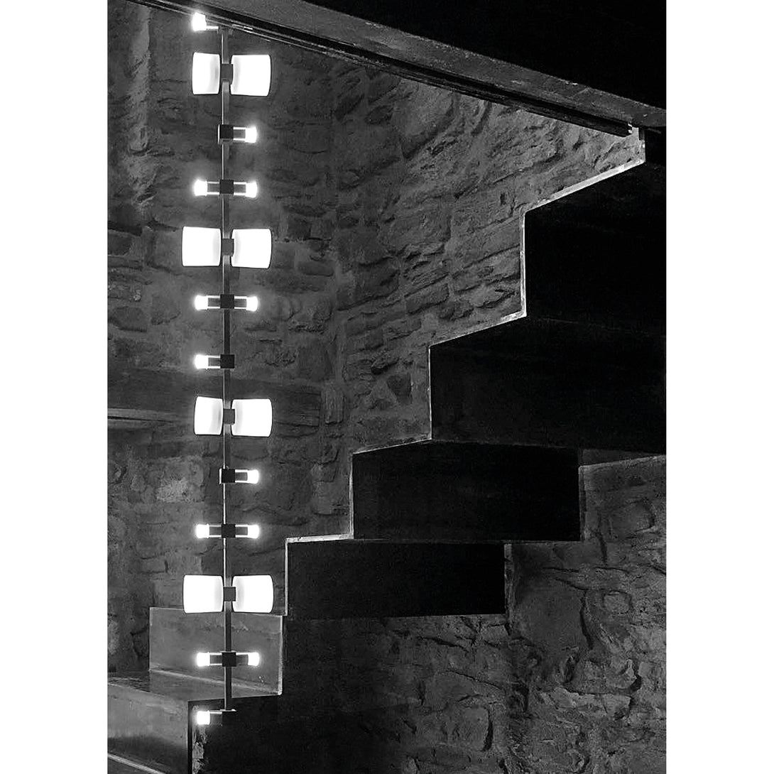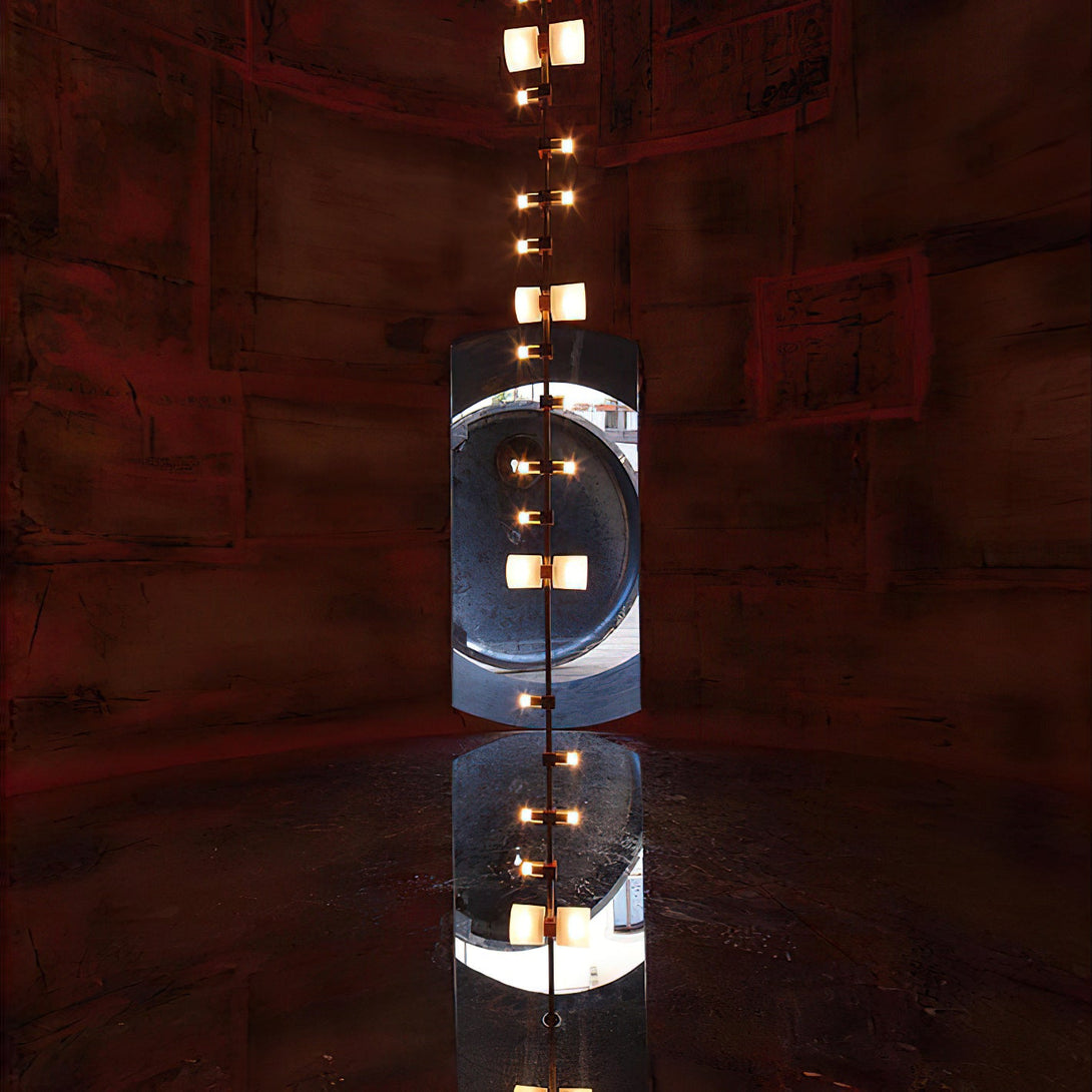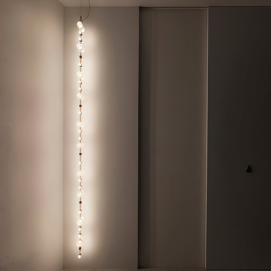 Semper Mia is an indoor ceiling lighting fixture. Made of two parts extruded stainless steel profile forming an electrified track providing diffused light for an electric source, complete with diffuser, acrylic, metal and stainless steel suspension unit.