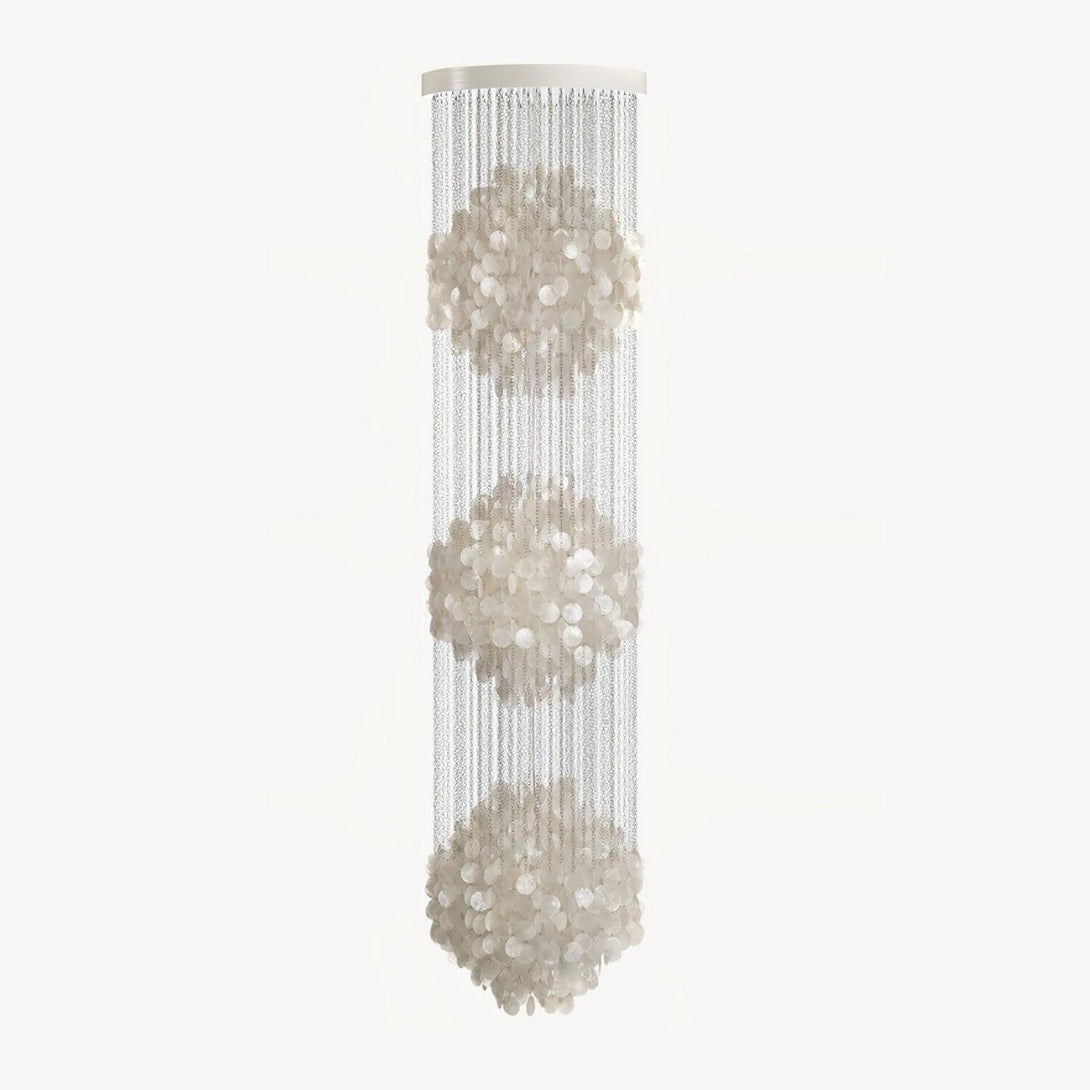 Indulge in the mesmerizing play of light and shadow with our Shell Waterfall Chandelier. The high-gloss chrome-plated frame, adorned with cascading shell disc chains, creates a unique and captivating effect on your ceiling. Its translucent surface acts as a light filter, elevating any space with a stunning visual display.