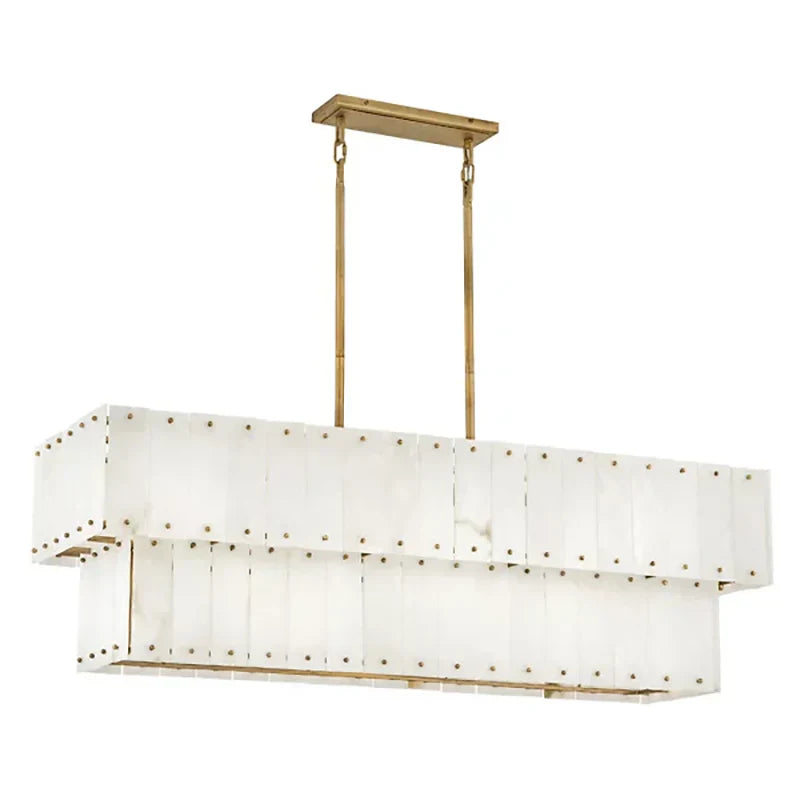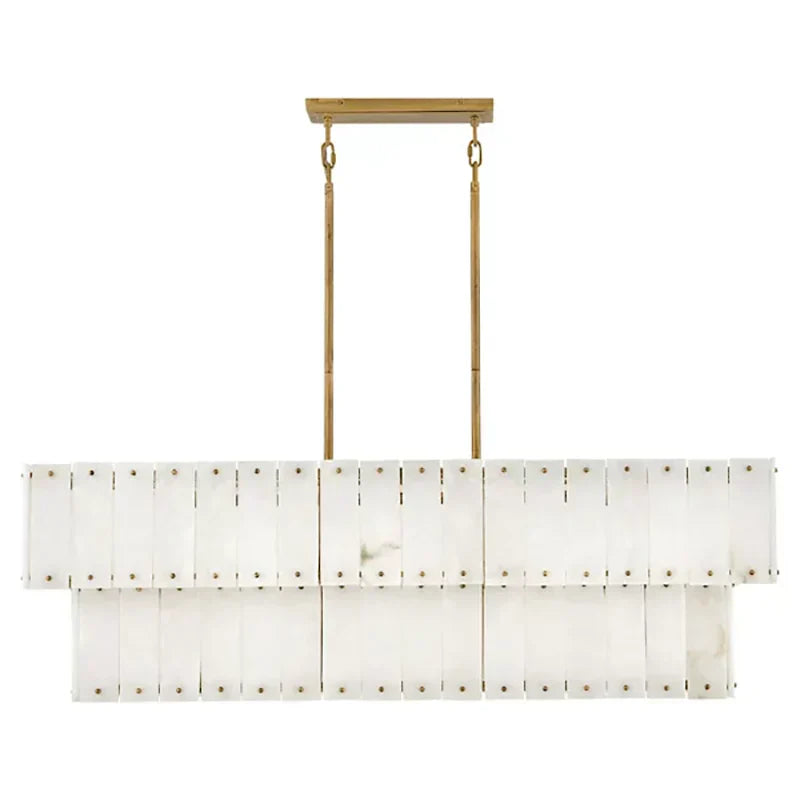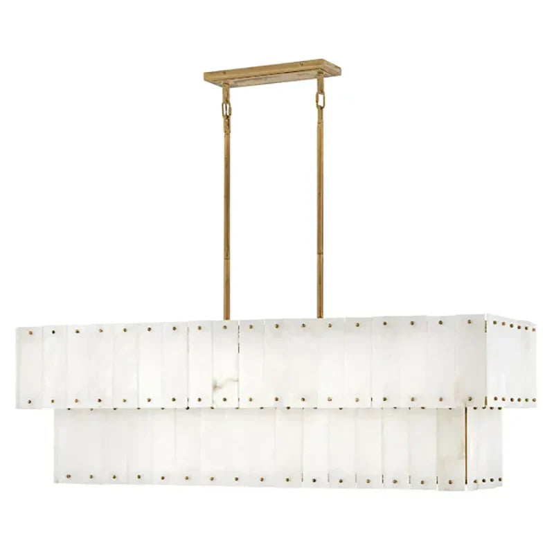 Showcase a transitional style with the Simone Linear Pendant Light. Crafted from durable steel, this hanging light exudes timeless elegance with its alabaster shade. Candelabra-base LED lights within each shade provide warm, pleasant illumination, creating an enchanting ambiance for your space.Simone can be mounted on sloped ceilings and secured by a drop bar that attaches to the ceiling canopy for versatility.
