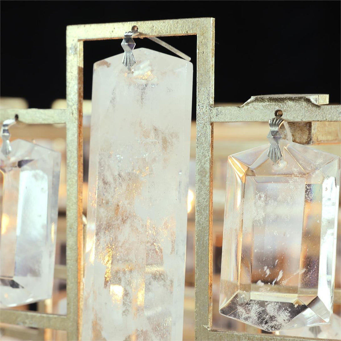 Finish: Light champagne silver leaf with clear and white occluded crystals