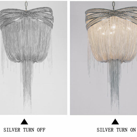 *Silver: Diameter:16″(40cm)*Height:27.6″(70cm);4-Lights;Chain Length: Adjustable, Max 49″(100cm);