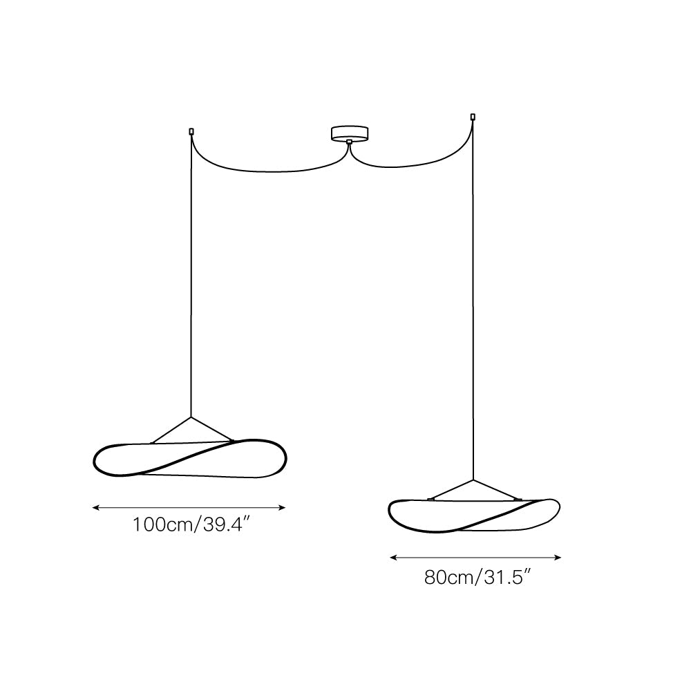 2 heads D 80+100cm x H 150cm / ∅ 31.5″ + 39.4″ x H 59″. (2 hooks)