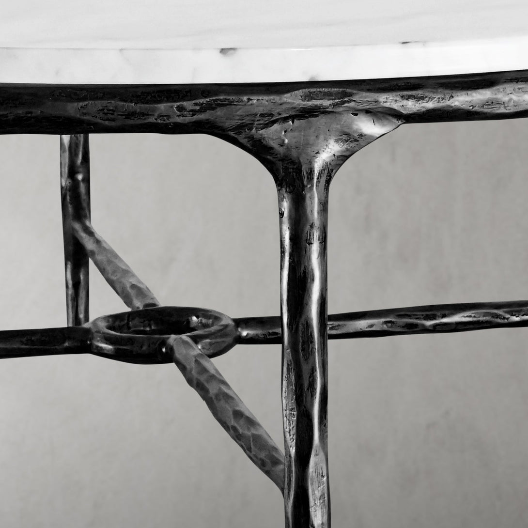 - Frame Construction: The frame is forged from solid metal and meticulously hammered by hand, ensuring durability and a one-of-a-kind finish.