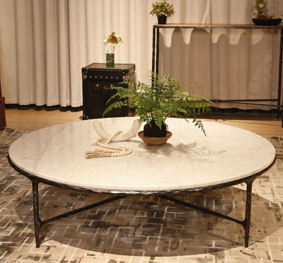 - Tabletop: Made from 1"-thick Italian marble, carefully placed over a solid wood core for strength and stability.