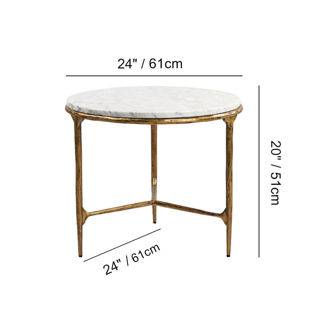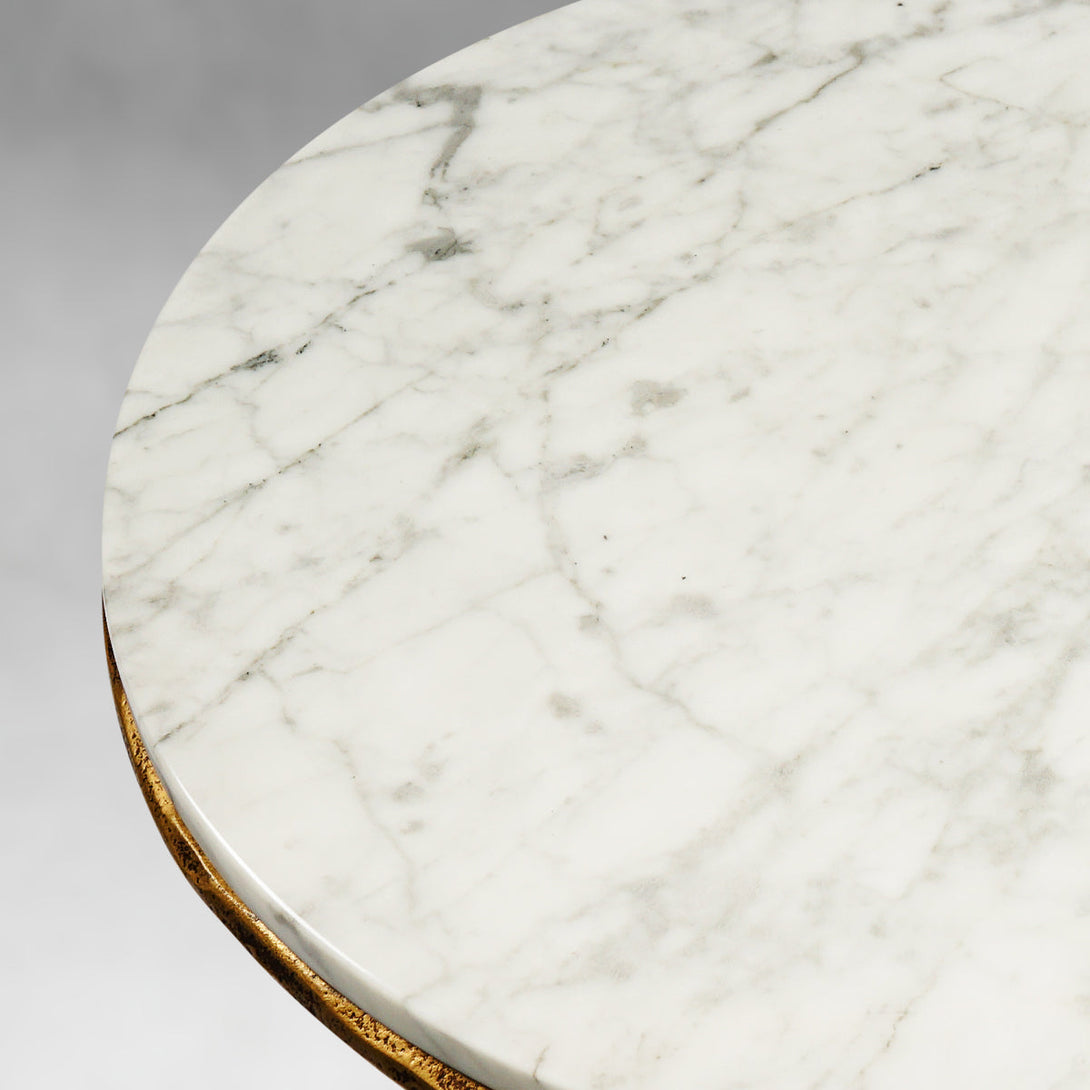 - Tabletop: Constructed from 1"-thick marble over a durable wood core. The marble is honed, sealed, and finished with a smooth quarter-round edge for an elegant look.