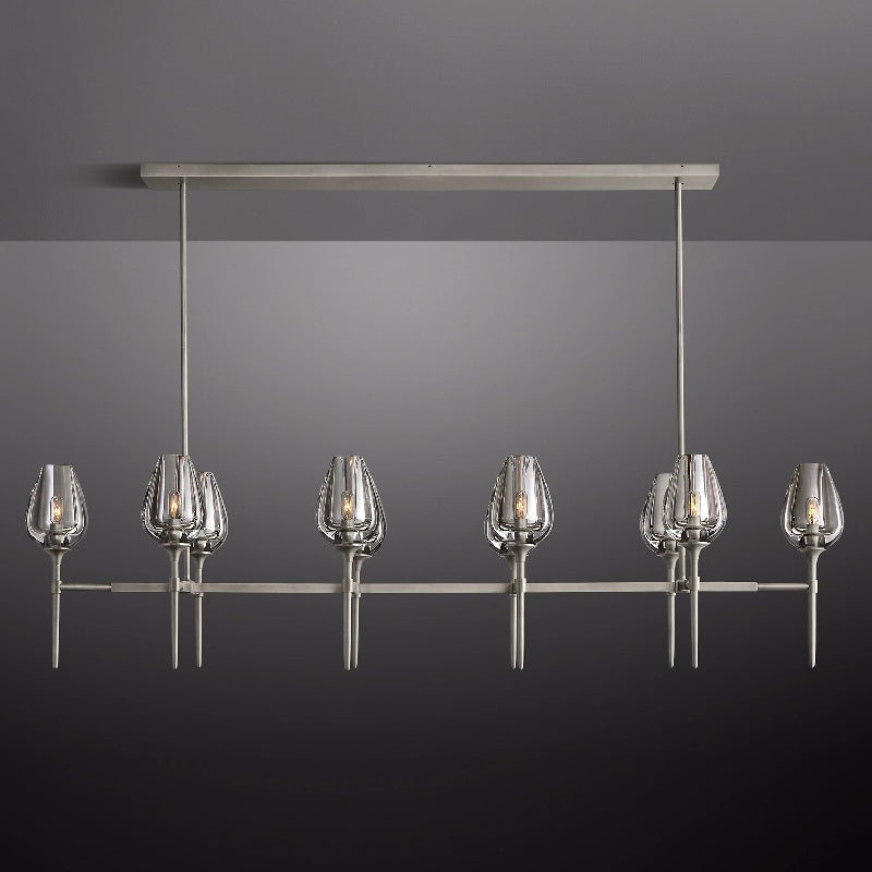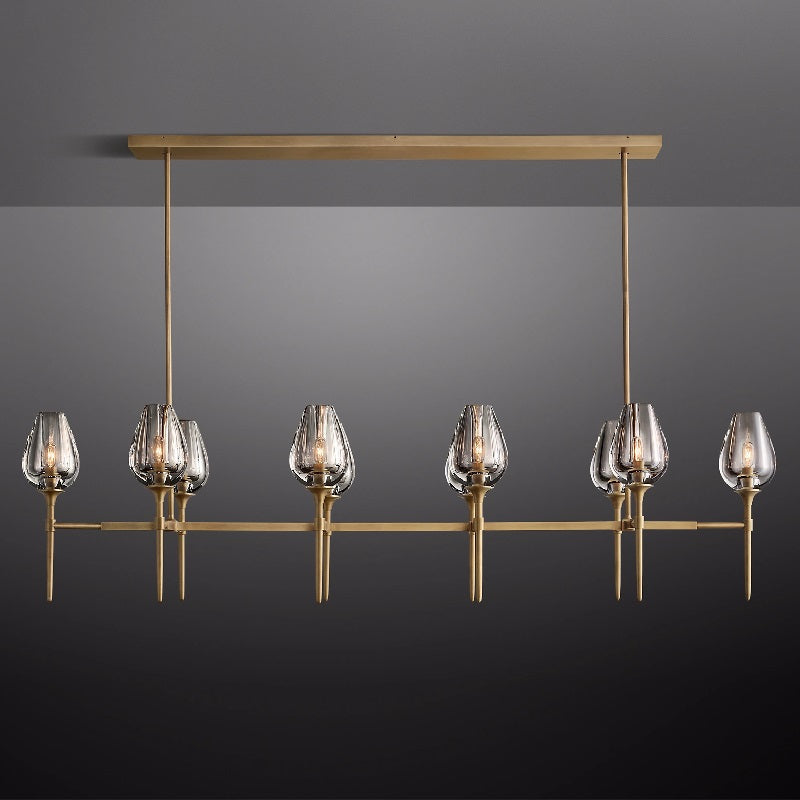 Inspired by the form of a tulip in bloom. The collection features torchieres made from solid blocks of crystal that have been lathe-carved and hand polished. The design of the torchieres incorporates the graduated thickness of a petal's delicate contours, which not only adds to their aesthetic appeal but also helps to cast a warm and atmospheric glow when illuminated. |