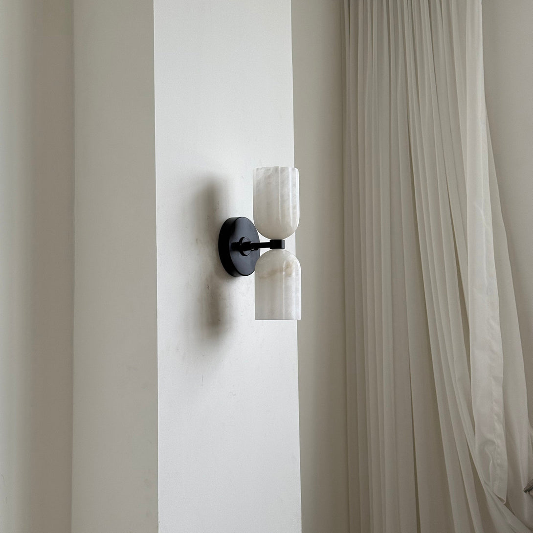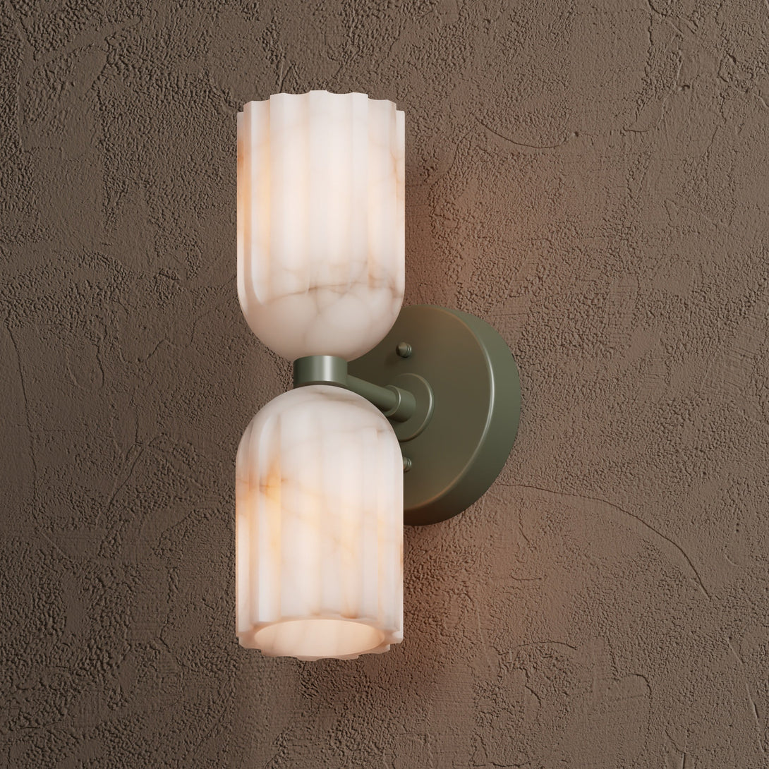 Elevate your space with the Tulum Double Alabaster Wall Lamp, featuring two hand-carved fluted alabaster shades. Crafted from genuine alabaster, these shades emit a soft, diffused glow that enhances any room with a warm and inviting ambiance. Perfect for adding a touch of refined elegance and subtle illumination to your home.