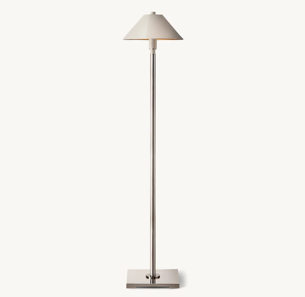 Our Utilitaire floor lamp from Ian K. Fowler is both polished and spare, representing an industrial minimalist vision. A subtly integrated telescoping mechanism allows height adjustment, while the socket's precisely crafted diamond knurled texture and simple slope shade offer restrained embellishment.