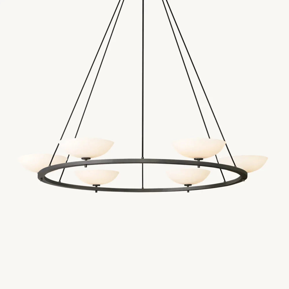 A study in simplicity and pure geometry, the Vernet collection by San Francisco lighting master Jonathan Browning features handcrafted metal frames whose clean lines recall early 20th-century designs of the Vienna Secession movement. The timeless silhouette's bisque porcelain shades cast a warm, ethereal glow when lit from within.