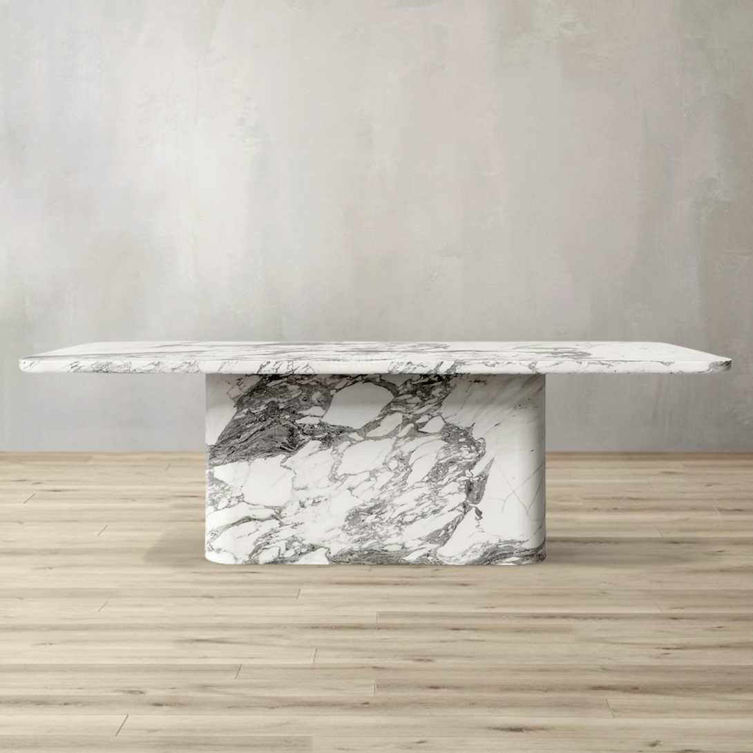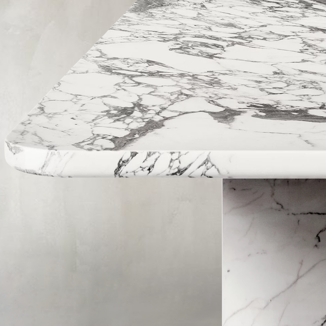 - Italian Arabescato Marble is honed and sealed for a satin finish that highlights the stone's bold vein patterning and striking contrasts