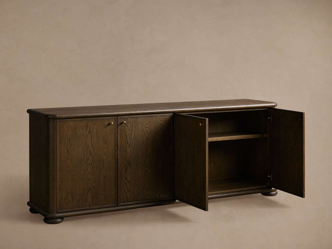 - Craftsman-built from solid oak wood with oak veneer in a rich mocha-toned finish.