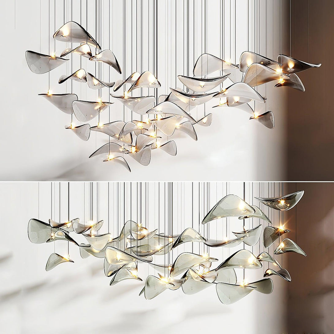 The Wave Floating Leaf Chandelier is expertly crafted for a unique and elegant lighting experience. With a stunning wave design and floating leaves, this chandelier adds a touch of nature to any space. Made with high-quality materials and attention to detail, it is a beautiful addition to any home or business.
