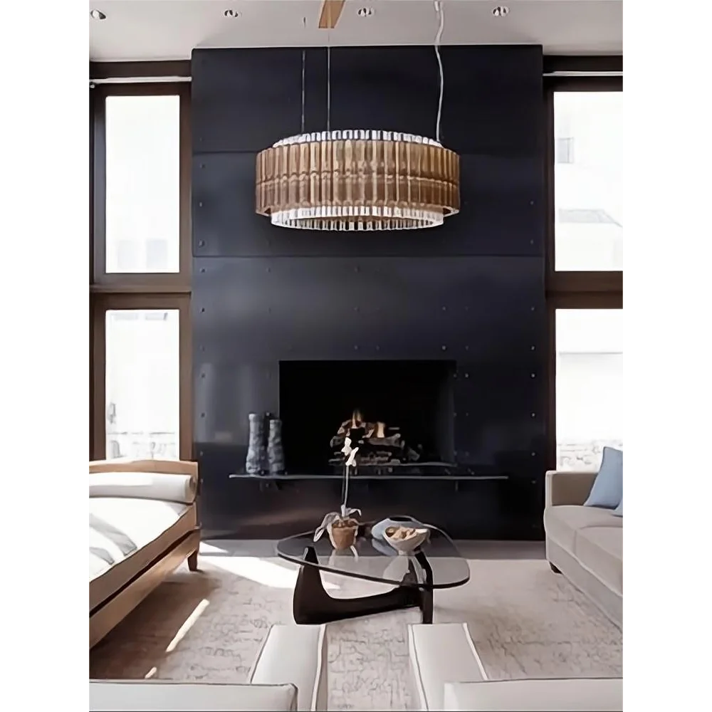 This striking drum chandelier features tiered smoked glass panels and polished crystal rods, arranged within a modern drum silhouette. Designed for discerning homeowners, the chandelier elevates upscale foyers and dining rooms with its sophisticated presence.